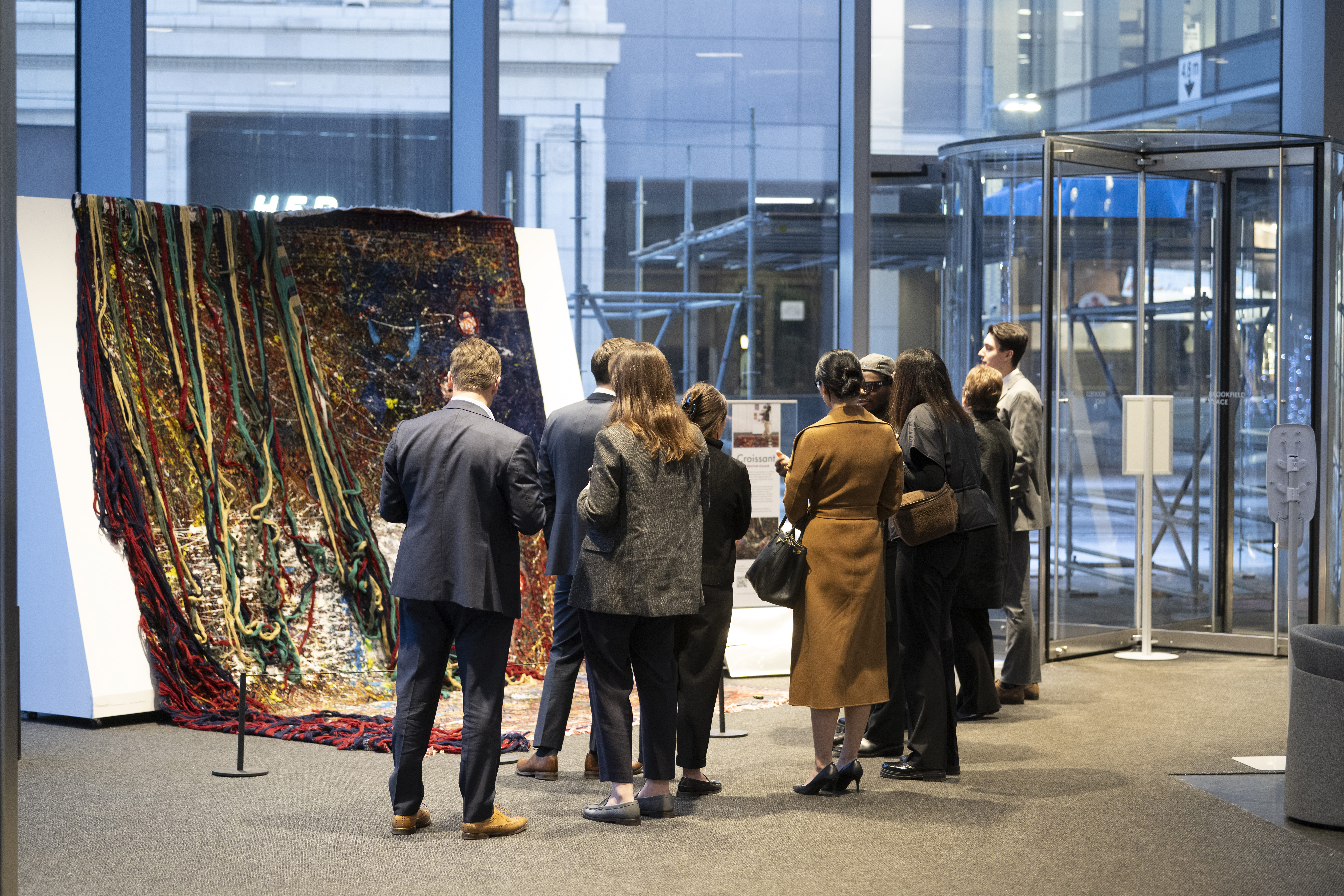 Central to the series is the use of traditional rugs as a canvas - in Ibrahim’s Islamic heritage, these rugs witness daily life, prayer, gatherings, and reflection. They become companions and maps of personal history, creating a dialogue between personal evolution and deep cultural heritage.